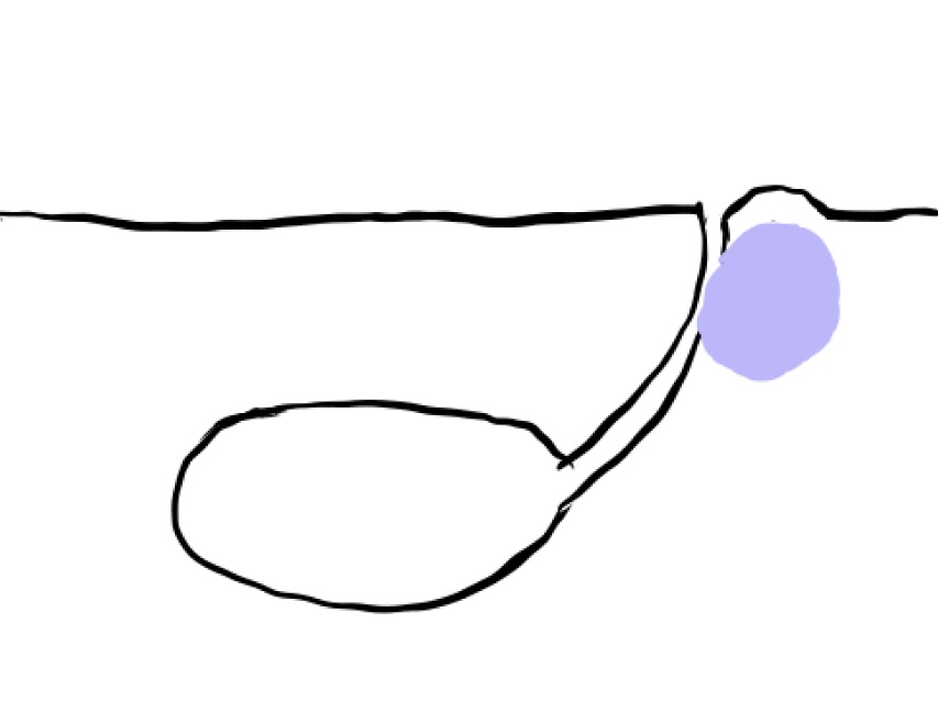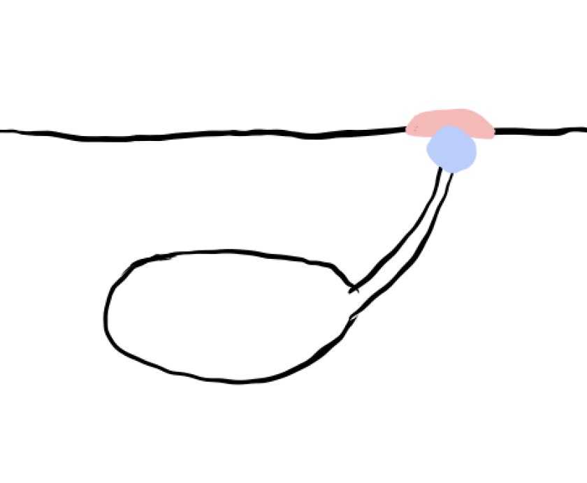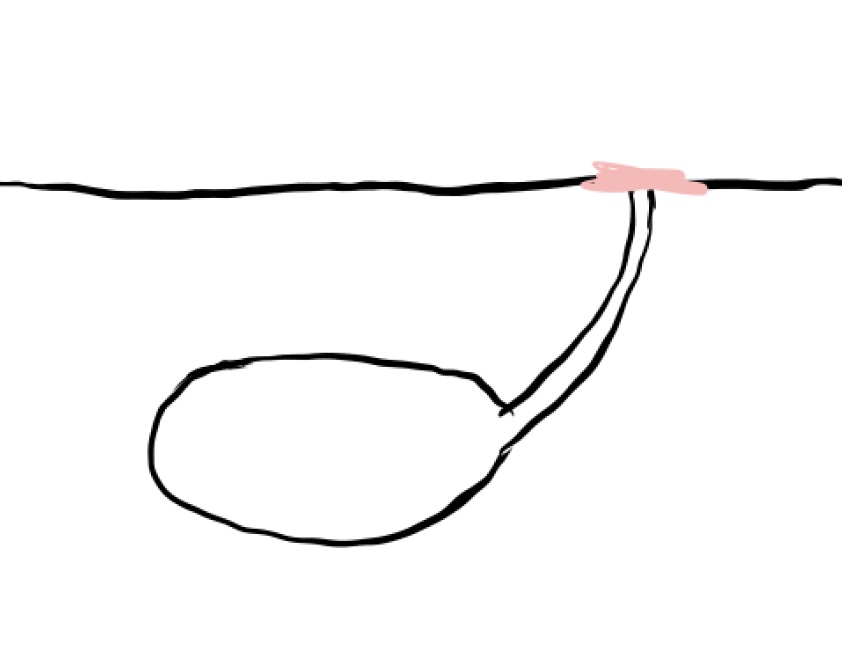 미세 조대술이란 위의 그림처럼 침으로 가득 차 있는 점액낭종에 실을 묶어 점액을 빼내어 그 자리에 살이 차오를 수 있도록 도와주는 시술입니다. 비교적 다른 시술들에 비해서는 간단할 수 있지만 위의 그림에서 보이듯이 살이 차오를 때 천장이 먼저 살이 붙어 침이 빠져나가지 못해 재발할 가능성이 있습니다. 성공률은 보통 6~70%로 타 시술에 비해 재발 가능성이 높은 시술입니다.